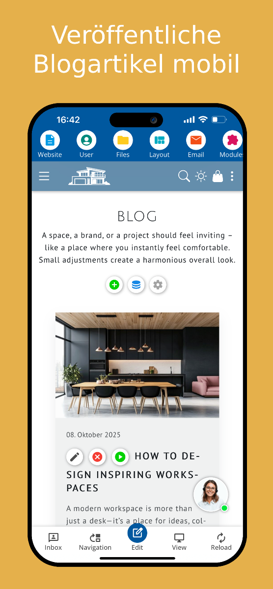 Lag din egen nettside, din nettbutikk eller din blogg enkelt selv – direkte i appen for smarttelefon og nettbrett. Last ned appen fra butikken og test den gratis i 10 dager.