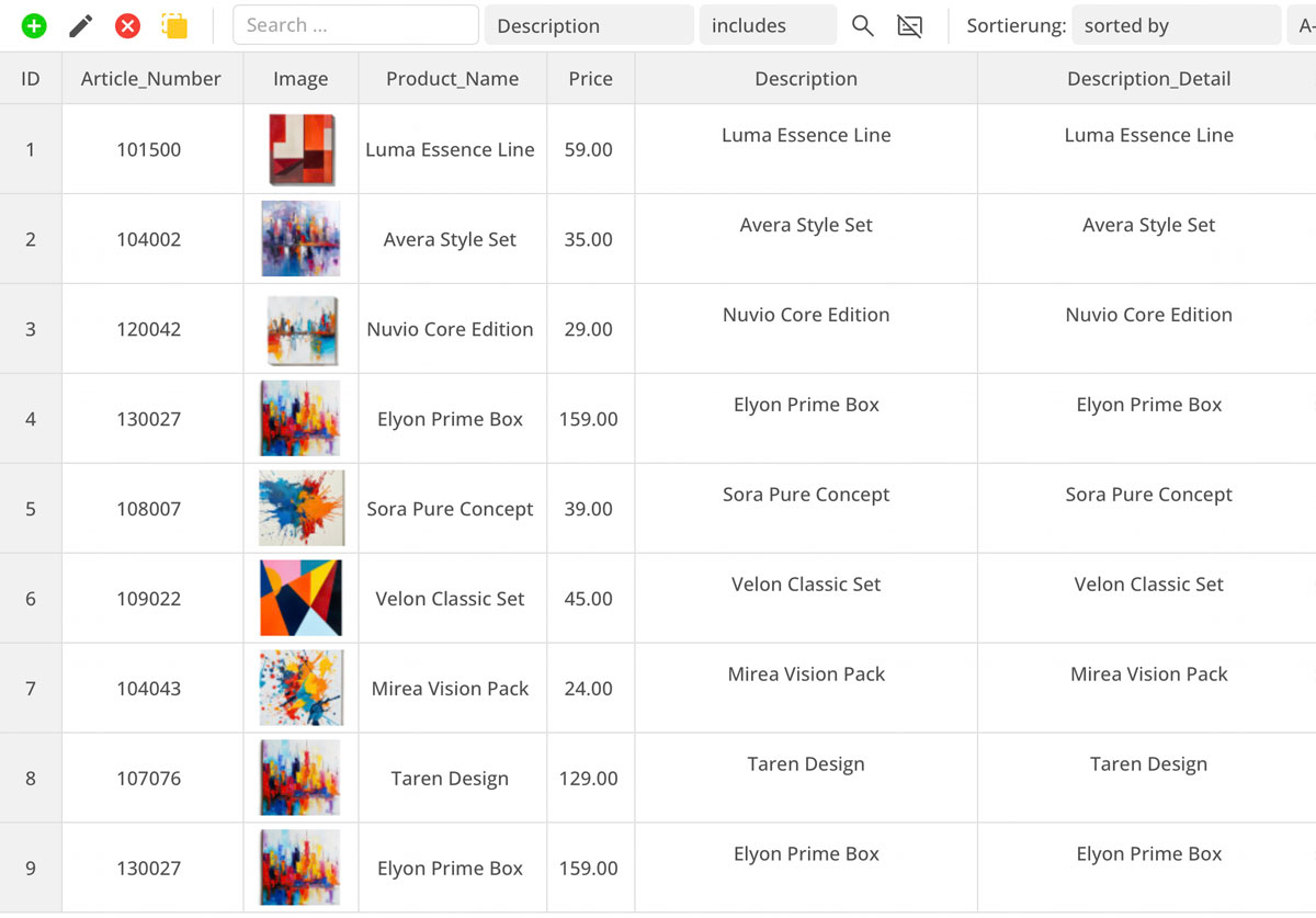 Databasen kan spesielt enkelt administreres i tabellformat. Innhold som nettbutikkartikler eller blogginnlegg lager du like enkelt som innlegg på sosiale medier.