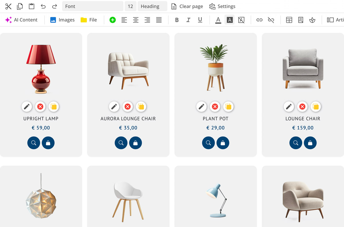 Artikkellister kan importeres og bilder kan automatisk knyttes. Også nettbutikken kan oversettes med hjelp av AI til opptil 24 språk.